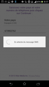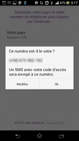 12. Si l’application ne passe pas automatiquement à l’étape suivante, vérifiez vos SMS et recopiez le code reçu dans Viber