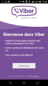 7. Appuyez sur Continuer pour commencer la configuration de Viber
