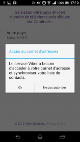 8. Cliquez sur OK pour autoriser Viber à accéder à votre carnet d’adresse