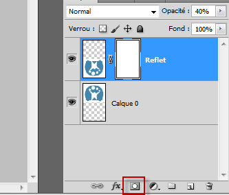 7. Pour encore plus de professionnalisme, n’hésitez pas à créer un effet de dégradé. Simple à effectuer, il vous suffit de resélectionner le calque “Reflet” puis, en bas de l’écran, cliquez sur l’onglet “Ajoutez un masque de fusion”.