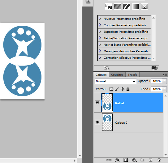 5. Vous devez maintenant déplacer l’image du calque “Reflet” vers le bas pour retrouver le premier calque en dessous.