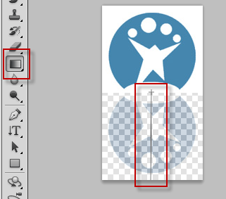 8. Cliquez ensuite sur “Outil de dégradé”. Pour finaliser l’effet, tracez une ligne verticale sur l’image du calque “Reflet”.