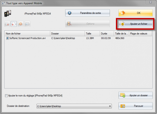 3 – Ajouter les fichiers à convertir et cliquer sur OK pour que la conversion se lance. Vos fichiers vidéo seront alors prêts pour être lus sur votre dispositif Apple.
