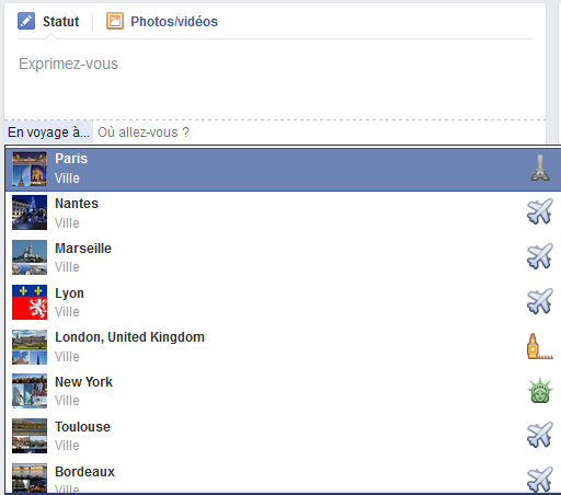 Facebook enrichit ainsi le nombre d’informations que vous pouvez donner en publiant un nouveau statut. Après les émotions et les activités, voici donc les voyages.