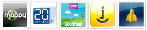 Pour le public français, je dirais les 5 suivantes: Mappy (système de géomapping gratuit), 20 Minutes (les informations gratuites), Good Food Healthy Recipes (des recettes de cuisine, 3€), les Pages Jaunes (annuaire gratuit), Dailymotion (service de vidéo gratuit).