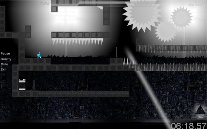 Dans la série “run and jump“, voici Exit Path, un jeu de plateforme en Flash qui vous met dans la peau d’un coureur contraint d’aller de l’avant pour sauver sa vie, dans une arène où la foule cruelle s’égosille dans l’espoir de le voir échouer…