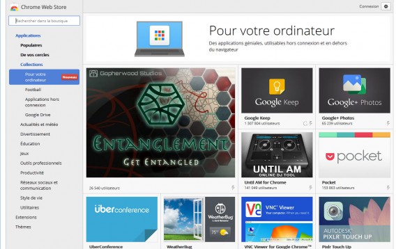 Pour célébrer le cinquième anniversaire de Chrome, en effet, Big G a inauguré une section inédite dans le Chrome Web Store. Intitulée Pour votre ordinateur, elle offre un tout nouveau type de produits : les applications Chrome.